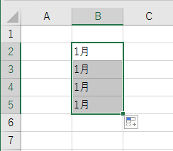 例えば「1月」をオートフィルすると、1月、2月、3月・・・となりますが、[Ctrl]キーを押した状態でオートフィルを行うとコピーになります。