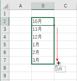 - 10月を入力してオートフィルすると、10月、11月、12月、1月、2月といった具合に1〜12月の連続値が入力できます。