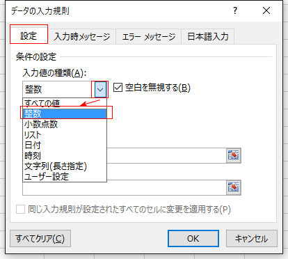 - セルに入力できる値に制限をかけることができます。この時の制限のルールを入力規則といいます。