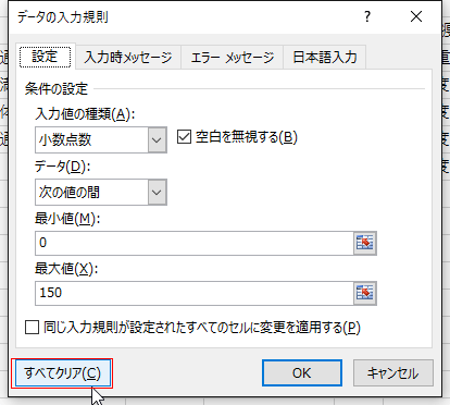 - セル範囲を選択して入力規則を解除(クリア)する方法