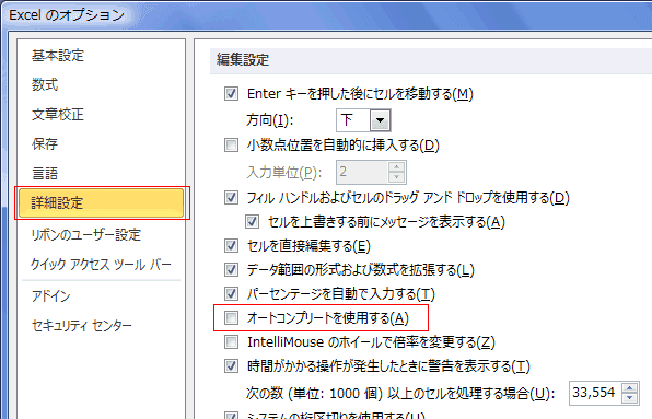 | Enter | 1つ下のセルへ移動 |