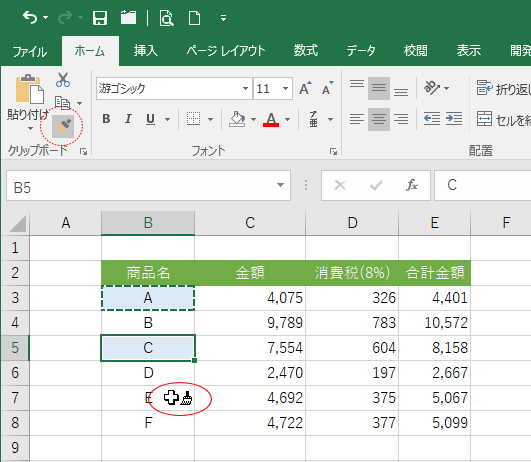 B5セルをクリックして書式を貼り付けます。