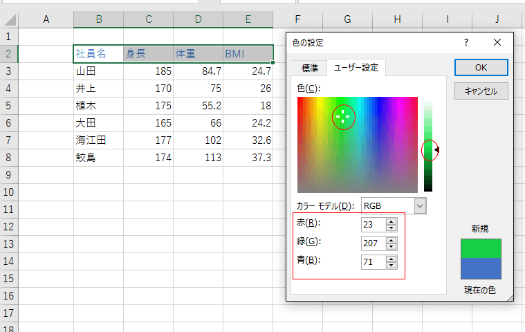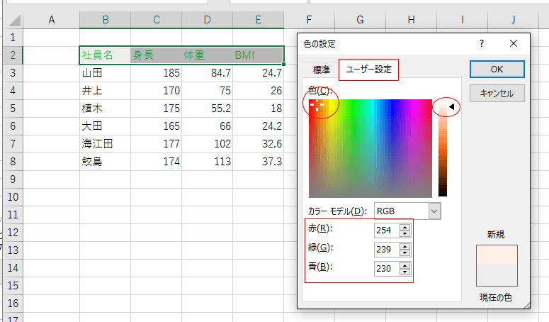 文字やセルに色を設定する