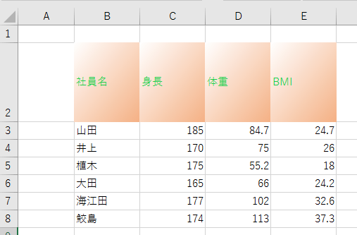 セルにグラデーションを付けることができました。