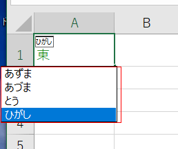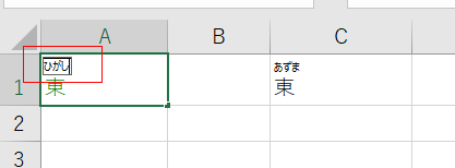 - 下図のように「ひがし」と振られたふりがなを「あずま」と編集したいケースがあります。