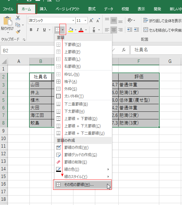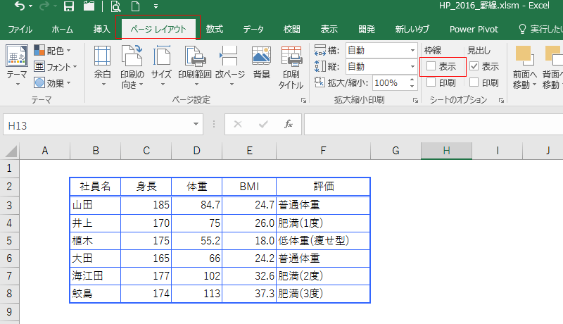 | xlInsideHorizontal | 12 | 範囲内のすべてのセルの水平罫線 |