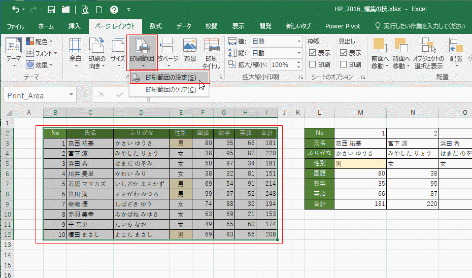選択していたセル範囲には Print_Area という名前が定義されます。