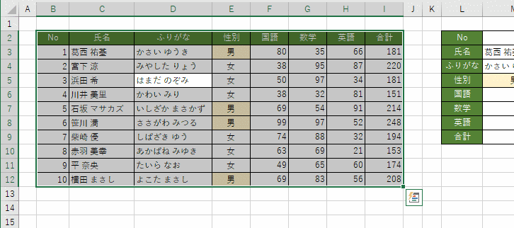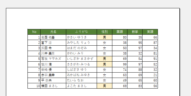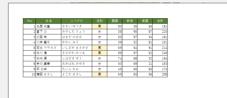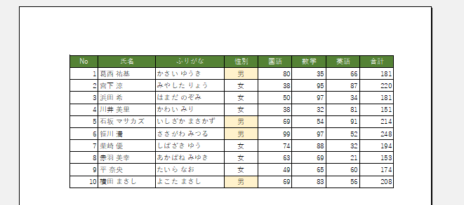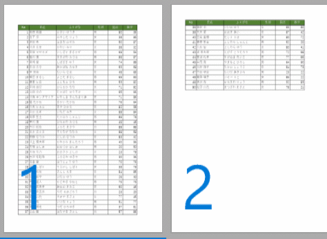 - ここで使用するシートは下図のように右端の「合計」の列が印刷されず、2ページにわたってしまっています。