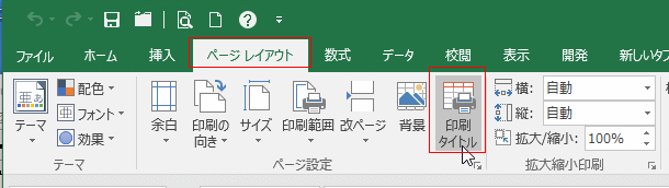 - [ページレイアウト]タブの[印刷タイトル]をクリックします。