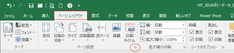 - [ページレイアウト]タブのページ設定グループにあるダイアログボックス起動ツールをクリックします。
