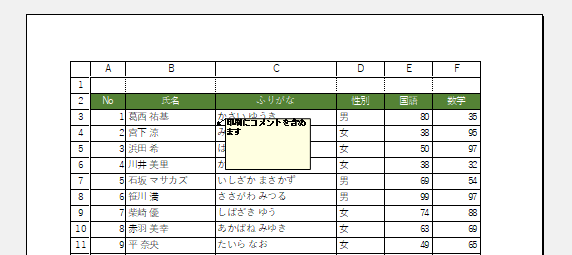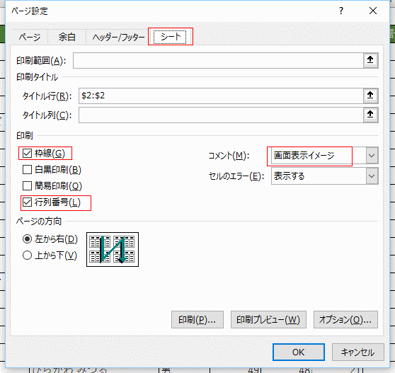 - 枠線・行列番号・コメント付きで印刷する