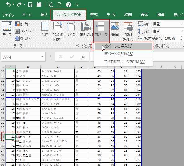 - 改ページプレビューを使って改ページを任意の位置に変更する