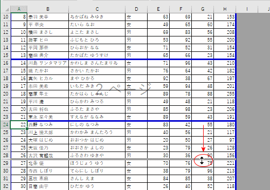 - 改ページの位置は青線をドラッグすることで変更することができます。