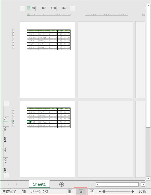 - 印刷状態はステータスバーにある[ページレイアウト ビュー]ボタンをクリックして確認することができます。