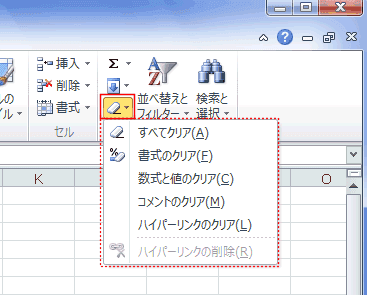 | すべてクリア | すべてがクリアされます。ただし、列幅や行高さは元のままです。 |