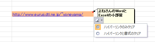 | ハイパーリンクの削除 | ハイパーリンクと書式がクリアされました。![]() |
