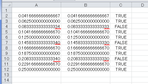 時刻の例を書いていますが、小数値では同じことが起こりえますのでご注意ください。