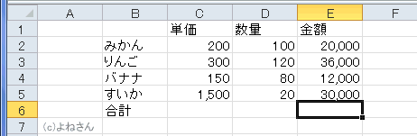 合計の結果E6セルは外さないといけません。