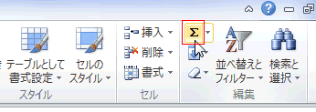 - [ホーム]タブの[編集]グループにある[オートSUM]ボタンを実行します。