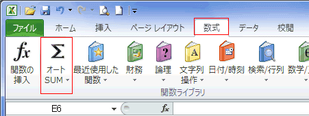 - [数式]タブの[関数ライブラリ]グループにも[オートSUM]ボタンがあります。