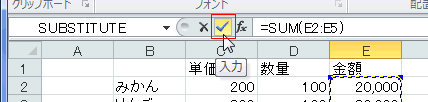 - [Enter]キーを押す代わりに、数式バーの左に表示される「入力」ボタンをクリックして入力することもできます。