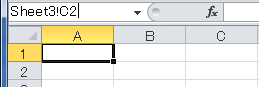 - 他のセルへ移動したいときはシート名を含めて入力します。「Sheet3!C2」とシート名に!を付けて指定します。