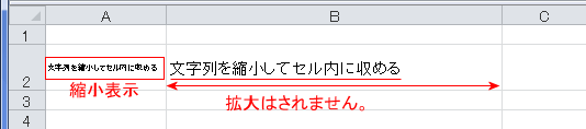 - 文字列がセル幅に合わせて縮小され、文字列全体がセル内に収まりました。