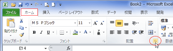 - [ホーム]タブ[配置]グループにあるダイアログボックス起動ツールをクリックします。