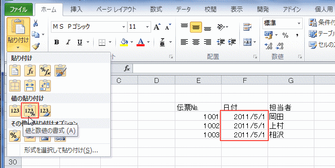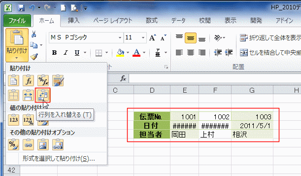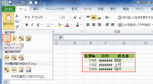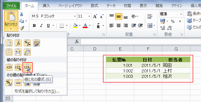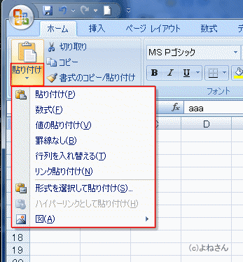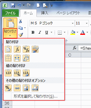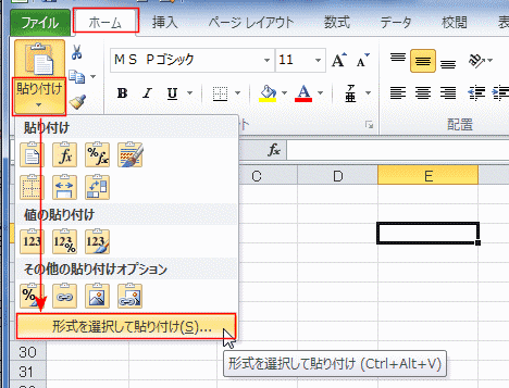 | Excel2010で変わった貼り付け方法 | ダイアログ から貼り付ける形式を指定する | |