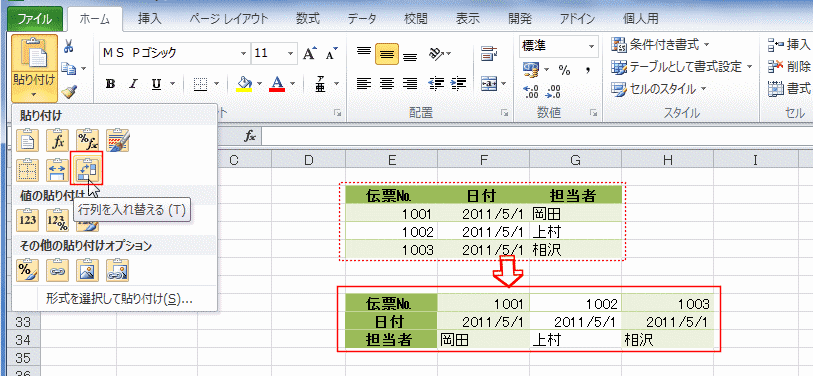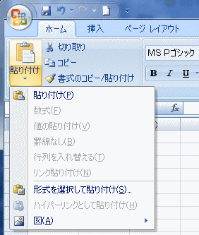 | 値の貼り付け | 行列を入れ替えて貼り付ける | 図として貼り付ける |