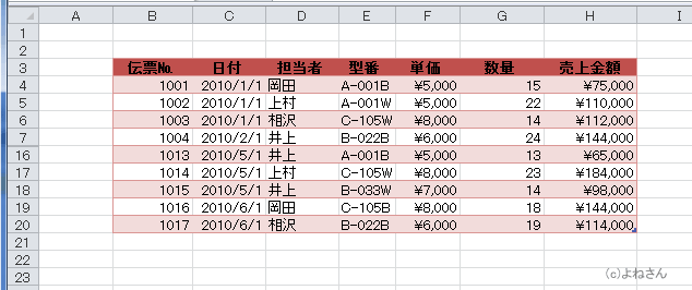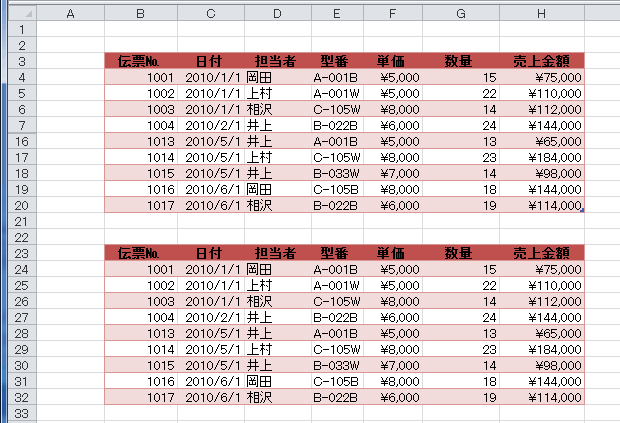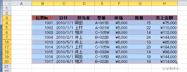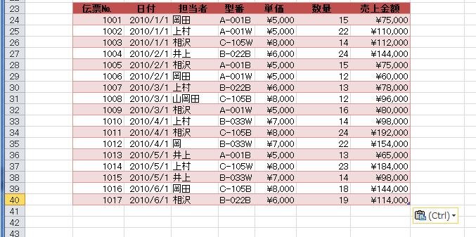 オートフィルターでは非表示のデータは無視されて、抽出されたデータのコピー&貼り付けができます。