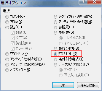 「可視セル」にチェックを入れて、[OK]ボタンをクリックします。