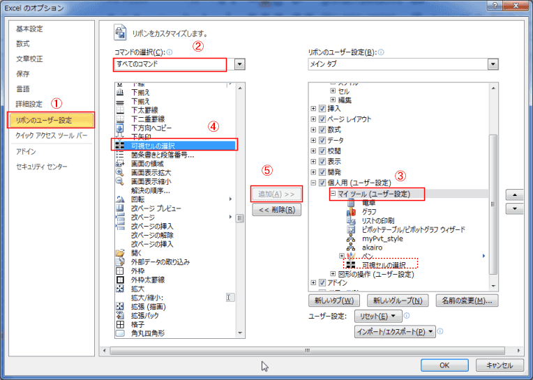 [可視セルの選択]ボタンをリボンに登録する