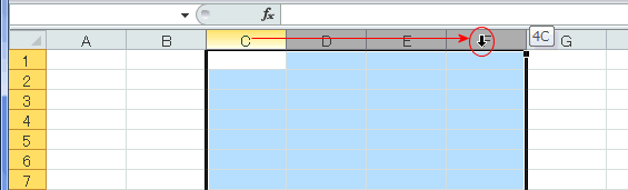 - 列番号上でマウスポインタが下向きの黒矢印の状態で行います。