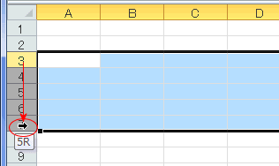 - 行番号「3」にマウスポインタを重ね、マウスポインタを[→]にします。