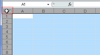 - 列番号[A]の左、行番号[1]の上をクリックすると、Sheet全体を選択できます。