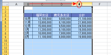 - B:E列をドラッグして選択します。