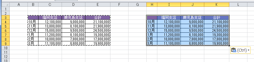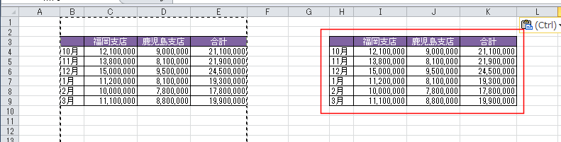 - 列幅が同じ状態で貼り付けられました。
