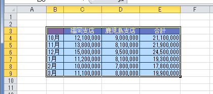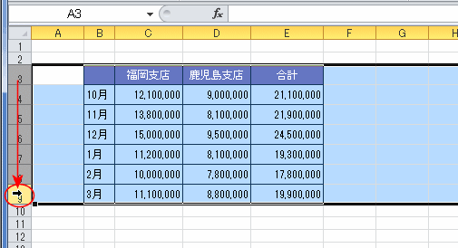 - 3:9行をドラッグして選択します。