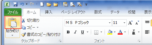 または、ショートカットキー[Ctrl]+[V]を打鍵します。