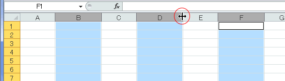 - 選択した列番号の右境界線上の1ヶ所をドラッグすると、選択した列全てが同じ幅に変更されます。