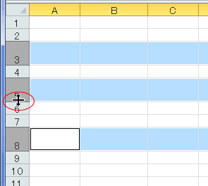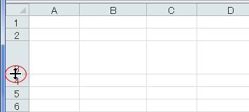 - マウスポインタを高さを変える行番号の下側境界に合わせます。