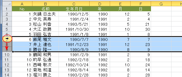 - ここでは、行の削除をする方法について書きます。列の削除は行の操作と同様ですので、行を列に読み替えて操作してください。