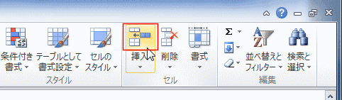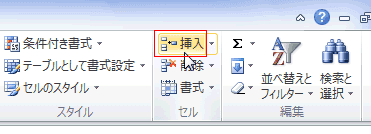 - [ホーム]タブの「セル」グループにある[挿入]を実行します。