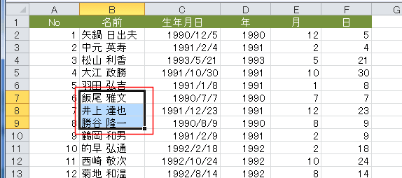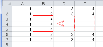 - 周りのセルは指定した方向(左方向)へシフトします。
