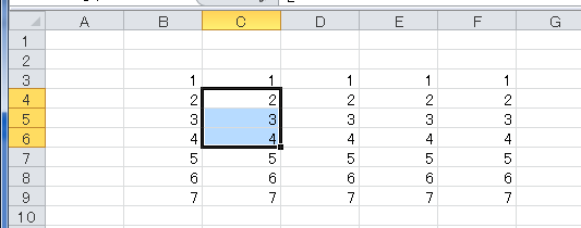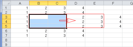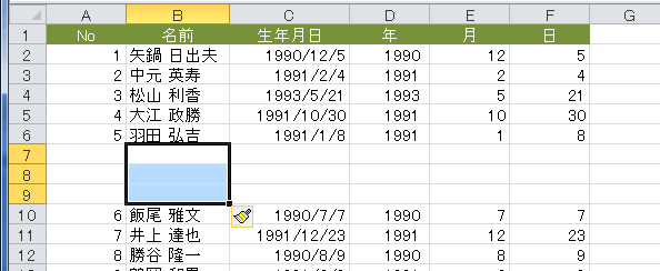 - 選択していたセル分のセルが挿入され、そこにあったセルは指定した方向へシフトしました。