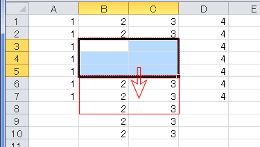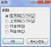- [セル]を選択した場合には周囲のセルをどちらに動かすかを指定します。