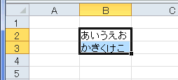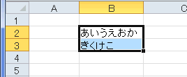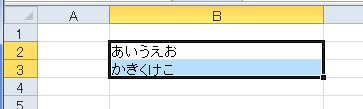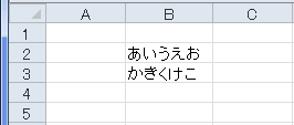 - B2セルに「あいうえお」、B3セルに「かきくけこ」と入力しています。
