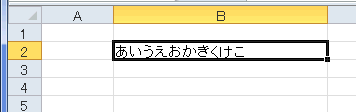 - B2セルに「あいうえおかきくけこ」と入力しています。