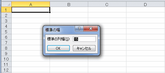 - 標準の列幅を「15」に変更して[OK]ボタンをクリックすると・・・